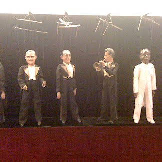 Vous constaterez comme moi qu'au niveau mouvements, c'est assez limité et ne représente qu'une image un peu "statique" du roi du Hi de Ho, connu pour ses mouvements scéniques de pantin désarticulé. Là, il a plus l'air d'avoir des atèles et une minerve et en pleine rééducation !... Mais cela plaisait beaucoup au public américain : pour le même prix, on avait un orchestre et un succédané de vedettes variées.